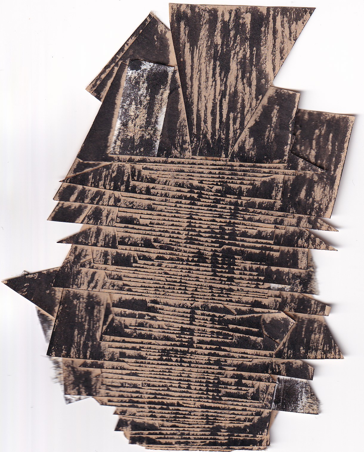 ERGONOMÍA LABORAL: obra realizada con los papeles que acaban en el bolso antes de ir a trabajar y que manipulo durante la horrible jornada laboral como ejercicio de evasión a los gritos e insultos.